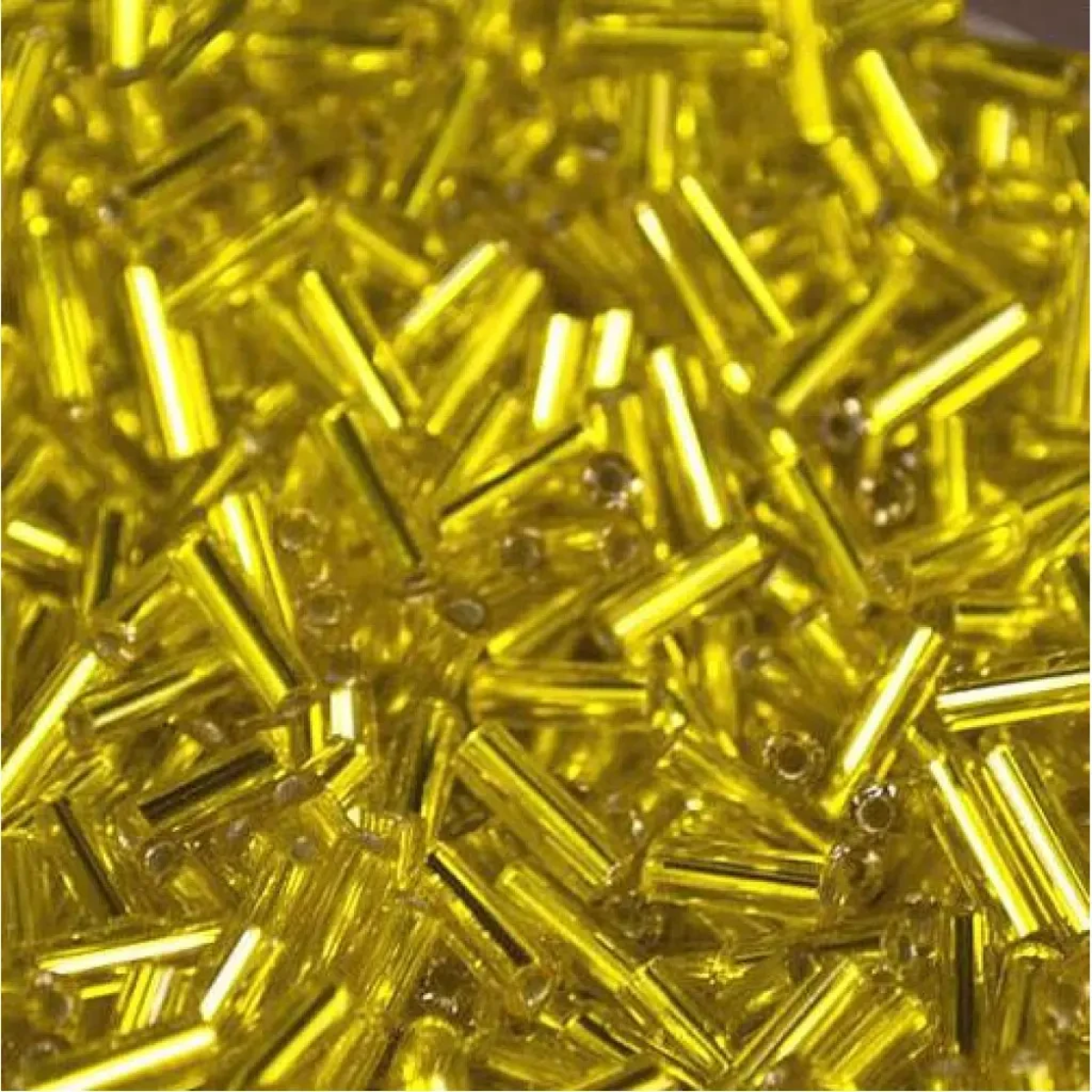 5““-87010 Стеклярус Чехія (стеклярус, блискучий лимонний), довжина 12 мм. Упаковка 10 грамів