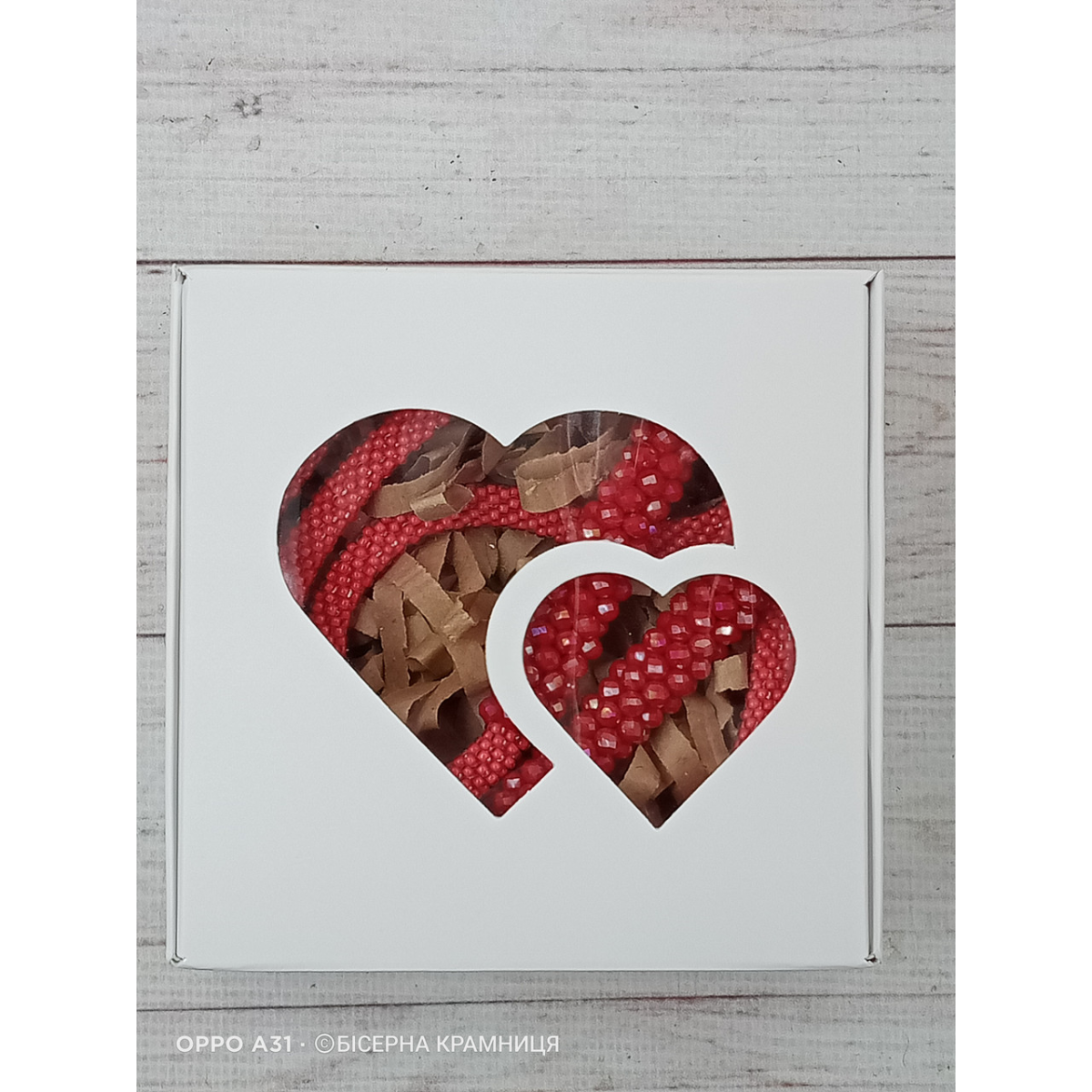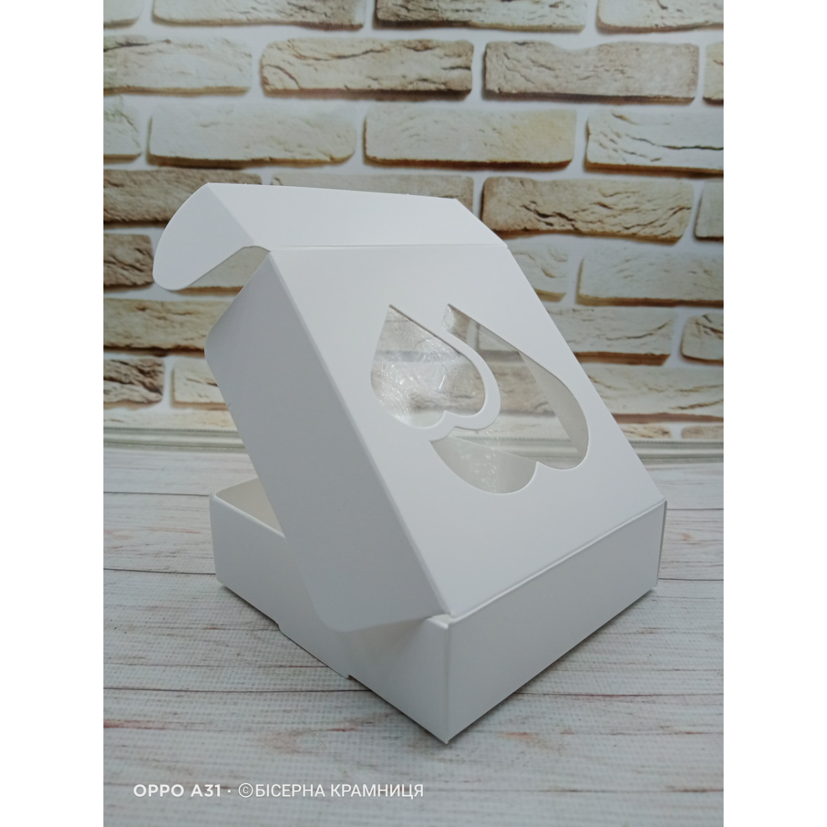 Самозбірна біла коробочка з віконцем “Два Серця“, розмір 100*100*30 мм