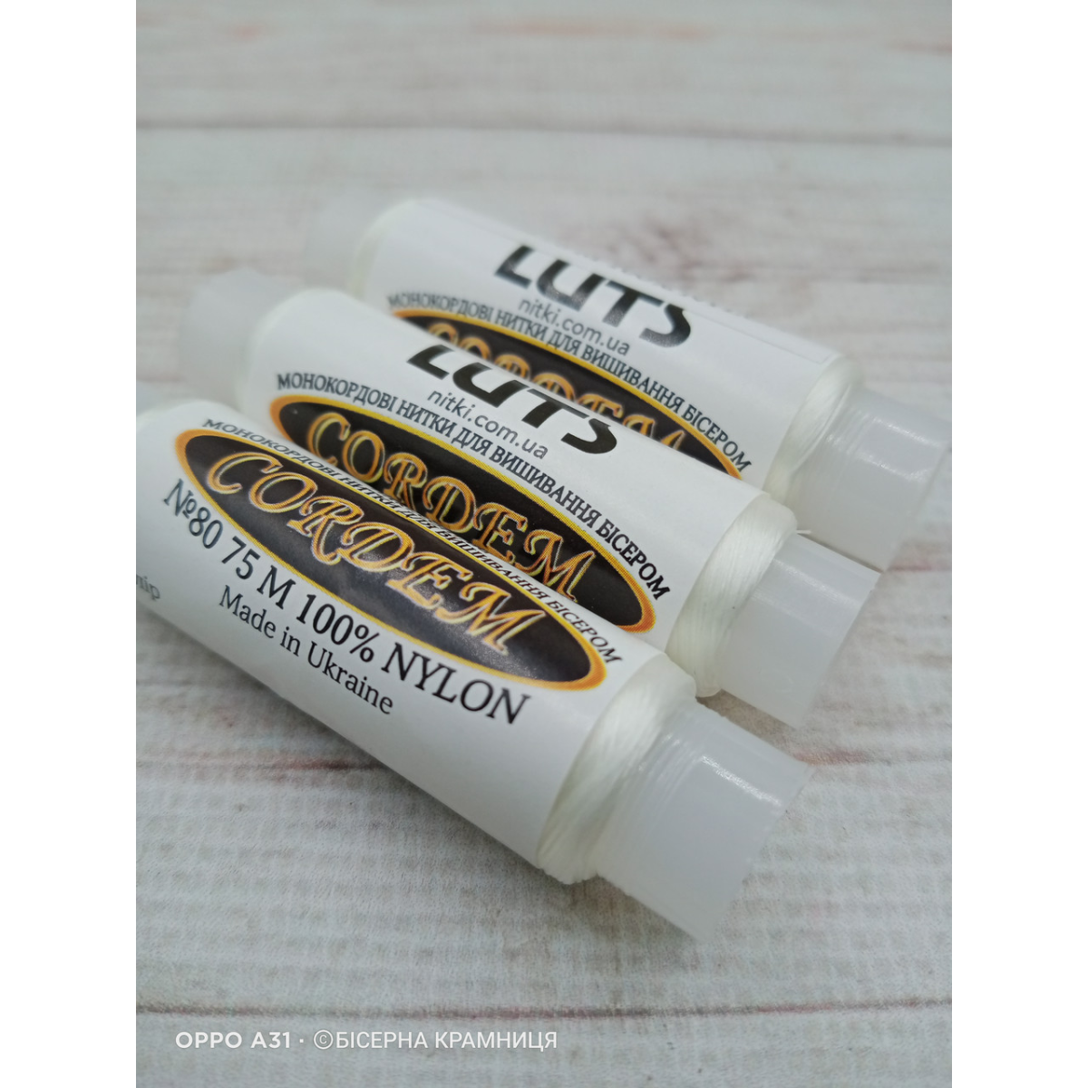 Нитка бісерна монокордова Cordem № 80, колір білий. 75 метрів