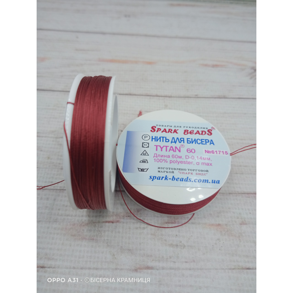 Нитка для бісеру TYTAN 60 бордовий, № 61715 (60 метрів)