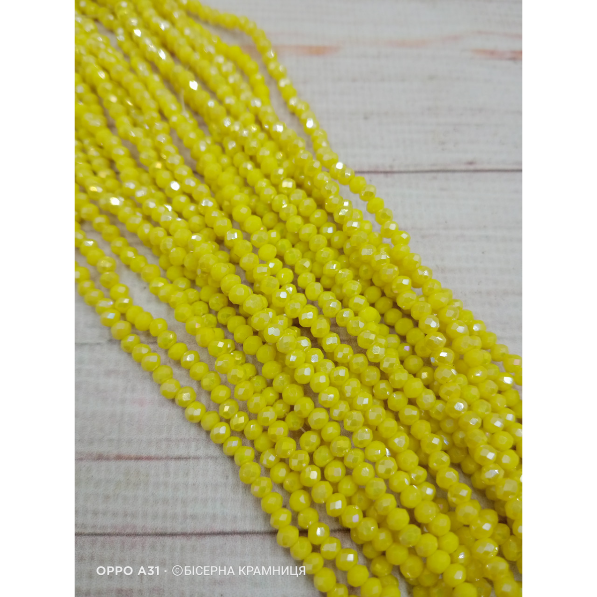 Ронделі, розмір 3,2*2,5 мм. Лимонні непрозорі з перламутровим покриттям