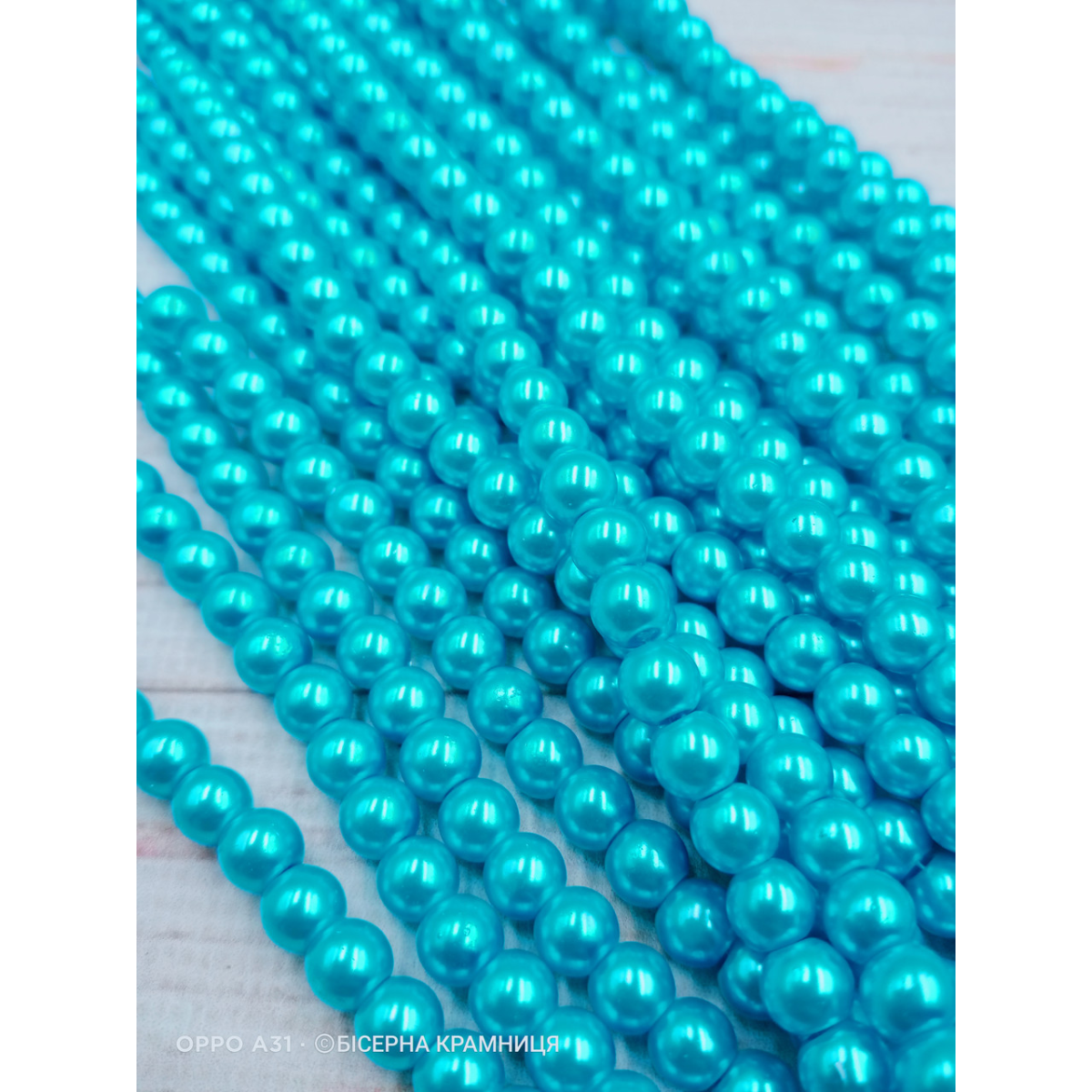 Майорка 6 мм, круглі намистини, скло. Колір блакитний аквамарин